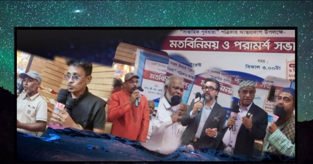 স্বাধীন সার্বভৌমত্ব বাঙালি জাতিসত্তাকে আরো শক্তিশালী করে মুক্তিযুদ্ধের চেতনায় সূগঠিত করার প্রত্যয় ও লক্ষ্য নিয়ে বিজয়ের মাসে, আগামী ১৬ ডিসেম্বর মহান বিজয় দিবসে চট্টগ্রাম থেকে প্রকাশিত হতে চলছে জাতীয় মানের ট্যাবলয়েড পত্রিকা “সাপ্তাহিক পূর্বধারা” (গভঃ আবেদিত)। মূল ধারার সাংবাদিকতাকে উজ্বিবিত রাখতে “নেপথ্যের সংবাদ” শ্লোগানে সাপ্তাহিক পূর্বধারা’র আত্মপ্রকাশের প্রস্তুতি উপলক্ষে বিশিষ্ঠ শিক্ষাবিদ, সাংবাদিক, সমাজহিতৈষী ব্যবসায়ী, সুশীল সমাজের প্রতিনিধিবৃন্দ ও বিভিন্ন শ্রেনী পেশার গুনিজনদের নিয়ে এক পরামর্শ ও মত বিনিময় সভা চট্টগ্রাম নগরীর আগ্রাবাদস্থ অভিজাত চায়নীজ রেস্তোঁরা ‘সাংরী-লা’র কনফারেন্স হল রুমে অনুষ্ঠিত হয়েছে।
