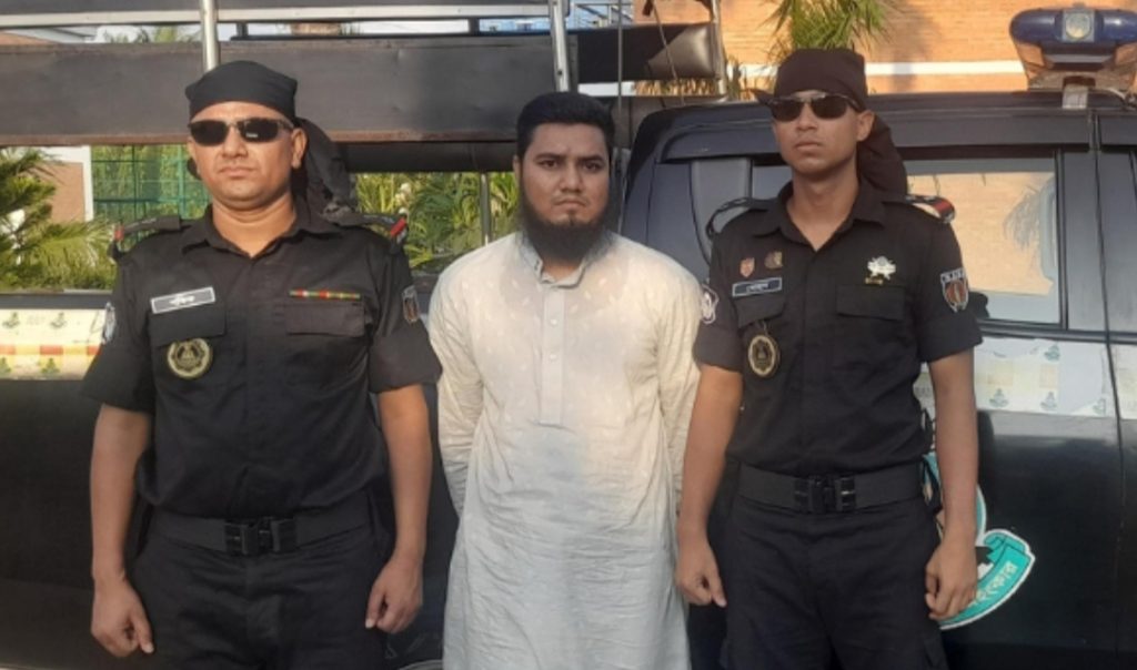 সোমবার (২১ অক্টোবর) দিবাগত রাতে ইপিজেড থানাধীন আকমল আলী রোড এলাকার আসামির শিক্ষা প্রতিষ্ঠান থেকে তাকে গ্রেপ্তার করে র্যাব -৭এর একটি দল।