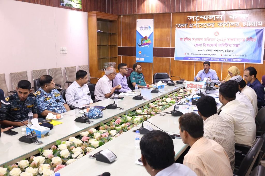 জেলা মৎস্য দপ্তর, চট্টগ্রাম কর্তৃক আয়োজিত আজ ২৯ সেপ্টেম্বর ২০২৫ খ্রি. চট্টগ্রাম জেলা প্রশাসকের সম্মেলন কক্ষে “মা ইলিশ সংরক্ষণ অভিযান ২০২৫” বাস্তবায়নের নিমিত্তে জেলা টাস্কফোর্স কমিটির এ সভা অনুষ্ঠিত হয়।