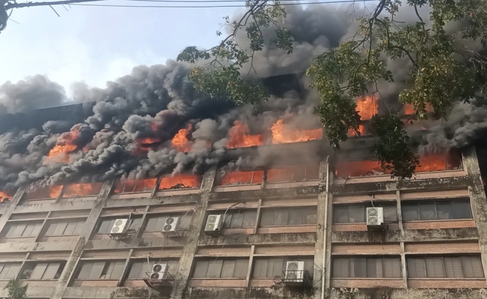 আজ বৃহস্পতিবার দুপুর ২টা ১০ মিনিটে আগুন লাগলেও ৯ ঘণ্টায়ও (বৃহস্পতিবার রাত সাড়ে ১০টা পর্যন্ত) নিয়ন্ত্রণে আসেনি। আগুন ছড়িয়ে পড়েছে ৯তলা ভবনের নিচতলা পর্যন্ত।