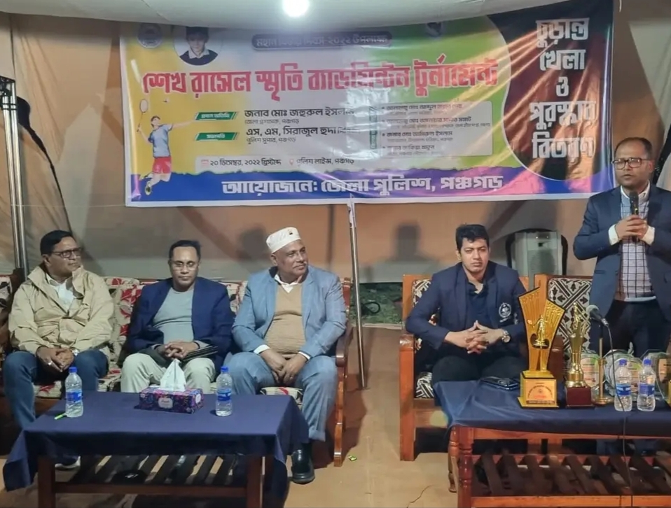 গত ২০ তারিখ মঙ্গলবার সন্ধ্যা ৭ টীয় মহান বিজয় দিবস- ২০২২ উপলক্ষে পঞ্চগড় জেলার উদ্যোগে র্পুলিশ লাইন্স, পঞ্চগড় শেখ রাসেল স্মৃতি ব্যাডমিন্টন টুর্নামেন্ট প্রতিযোগিতার ফাইনাল খেলা ও পুরস্কার বিতরণী অনুষ্ঠানটি আয়োজন করা হয়। উক্ত ফাইনাল খেলায় দক্ষ ও অভিজ্ঞতাসম্পন্ন খেলোয়াড় এর ২০ টি দল এ প্রতিযোগিতায় অংশগ্রহণ করে।