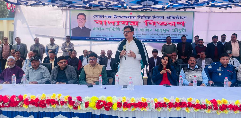বোচাগঞ্জ উপজেলার বিভিন্ন শিক্ষা প্রতিষ্ঠানের মাঝে বাদ্যযন্ত্র বিতরণ করেন।