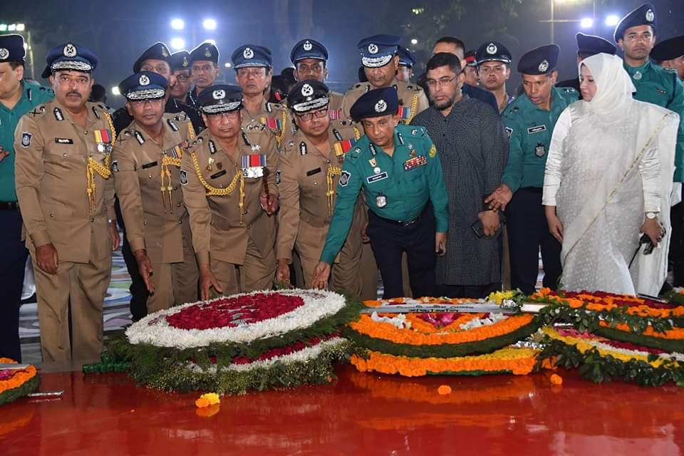শহিদদের প্রতি আইজিপি ও ডিএমপি কমিশনারসহ পুলিশের উর্ধ্বতন কর্মকর্তাগণের ভাষা শহিদদের বিনম্র শ্রদ্ধা জ্ঞাপন করেছে।