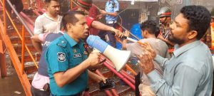 রাজধানীর নিউমার্কেটে আরগুন নিয়ন্ত্রণে কাজ করছে ডিএমপি পুলিশ।