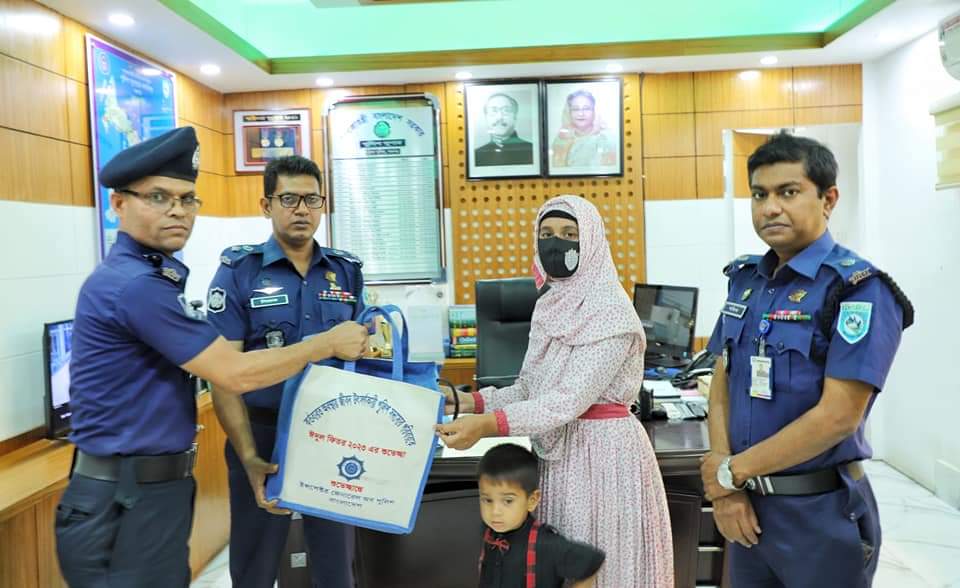 মাননীয় আইজিপি মহোদয়ের পক্ষে মৃত এসআই (নিঃ) খাদেমুল করিম, মৃত নারী কং মোছাঃ বিথী খাতুন ও মৃত কং মোঃ পশিরুল ইসলাম এর পরিবারের কাছে এই উপহার প্রদান করেন।