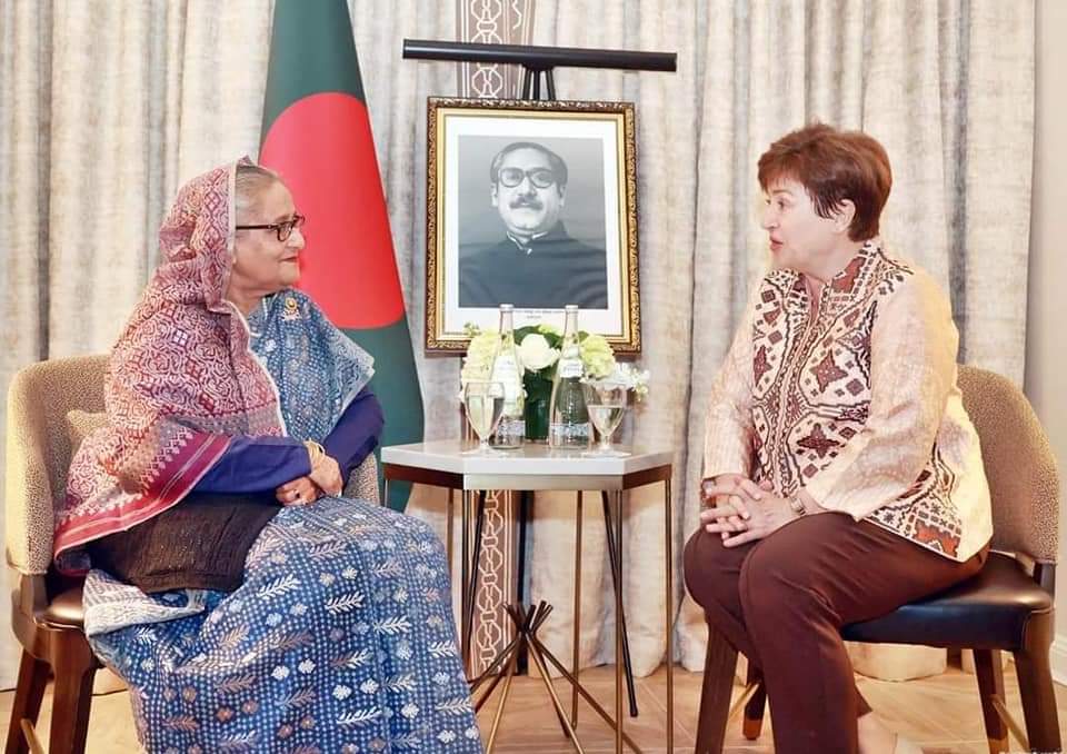 বাংলাদেশের উন্নয়নমাতা মাননীয় প্রধানমন্ত্রী শেখ হাসিনার সঙ্গে দ্য রিজ-কার্লটন হোটেলের সভাকক্ষে সৌজন্য সাক্ষাতও করেন আইএমএফের ব্যবস্থাপনা পরিচালক ক্রিস্টালিনা জর্জিভার নেতৃত্বে একটি প্রতিনিধি দল।