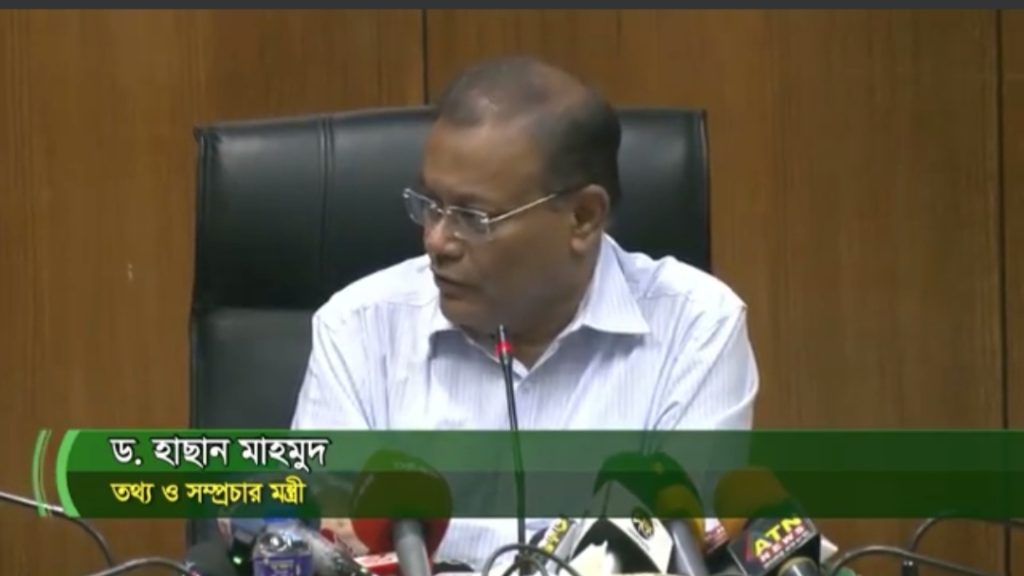 একটি দৈনিক পত্রিকার রিপোর্ট উদ্ধৃত করে সাংবাদিকরা দেশের ওপর ‘স্যাংশন’ সম্ভাবনা নিয়ে প্রশ্ন করলে সম্প্রচার মন্ত্রী ড. হাছান মাহমুদ বলেন, ‘যে পত্রিকা লিখেছে তাদের জিজ্ঞাসা করুন, আমার এ বিষয়ে কোনো কিছু জানা নেই। আরেকটি কথা হচ্ছে মার্কিন যুক্তরাষ্ট্র আমাদের উন্নয়ন সহযোগী, তাদের সাথে আমাদের সম্পর্ক অত্যন্ত চমৎকার।