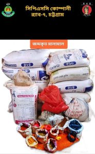 র্যাব-৭, চট্টগ্রামের ভেজাল বিরোধী অভিযানে অস্বাস্থ্যকর পরিবেশে ভেজাল মসলা তৈরি করার অপরাধে বাকলিয়া হতে বিপুল পরিমাণ ভেজাল মসলাসহ ১০ জন ব্যবসায়ীকে আটক করেছে।