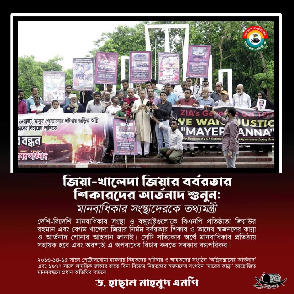 জিয়া-খালেদা জিয়ার বর্বরতার শিকারদের আর্তনাদ শুনার জন্য বলেছেন মানবাধিকার সংস্থাগুলোকে তথ্যও সম্প্রচার মন্ত্রী হাসান মাহমুদ।
