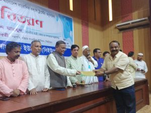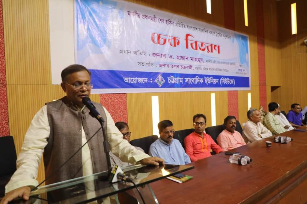 অনুষ্ঠানে ৪২ জন সাংবাদিকের হাতে প্রায় ৩৪ লাখ টাকার চেক হস্তান্তর করেন তথ্য মন্ত্রী হাসান মাহমুদ।
