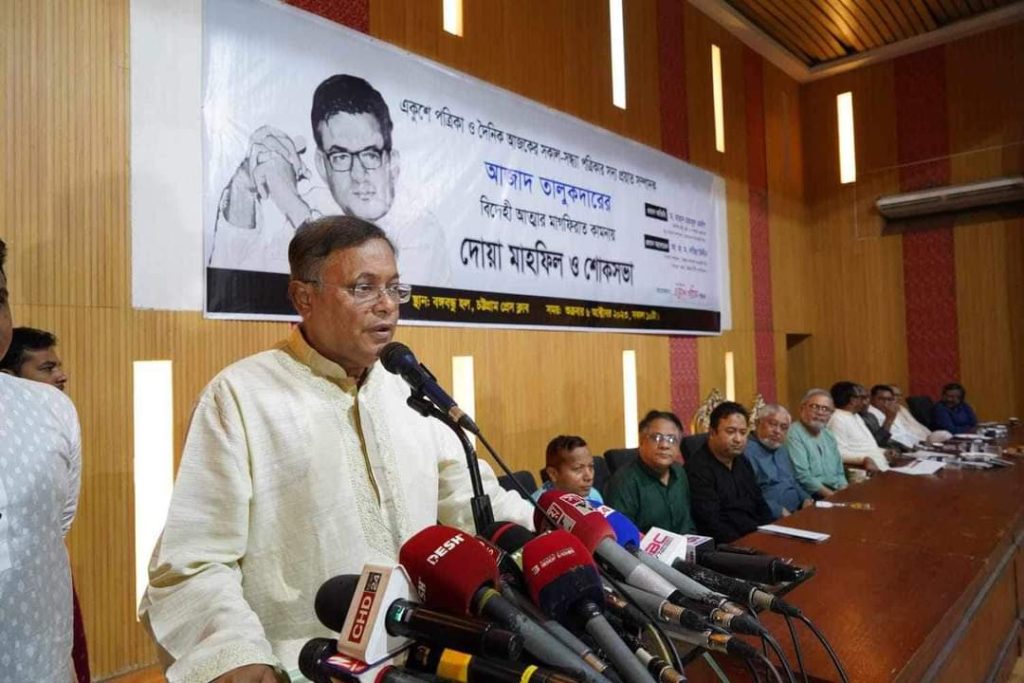 শুক্রবার দুপুরে চট্টগ্রাম প্রেসক্লাবের বঙ্গবন্ধু হলে একুশে পত্রিকা’র সদ্যপ্রয়াত সম্পাদক আজাদ তালুকদার স্মরণে দোয়া মাহফিল ও শোকসভায় প্রধান অতিথির বক্তৃতা শেষে সাংবাদিকদের প্রশ্নের জবাবে তিনি এ কথা বলেন।
