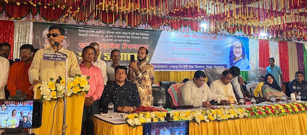 প্রতিমন্ত্রী খালেদ মাহমুদ চৌধুরী বিরলের ভান্ডারা ইউনিয়নে বেতুড়া দ্বি-মুখী উচ্চ বিদ্যালয়ের নবনির্মিত তিনতলা উর্দ্ধমুখী সম্প্রসারিত ভবন, শ্রী শ্রী রাধাকৃষ্ণ মন্দির ও বালান্দোর উচ্চ বিদ্যালয়ের একাডেমিক ভবনের উদ্বোধন শেষে সুধি সমাবেশে প্রধান অতিথির বক্তৃতায় এসব বলেন।
